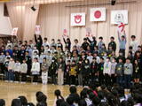 修了式では、各学年の代表者が修了証を受け取り、その学年の児童がそろって礼をしました。