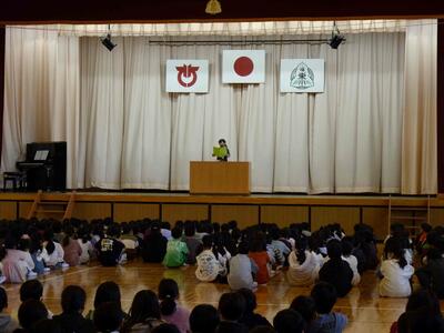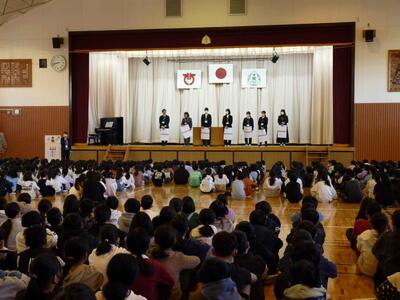校長先生から、冬休みの宿題について、3学期は次の学年、学校へ向けての準備をする学期であるという話がありました。短い学期ではありますが、目標や夢に向かって進んでいって欲しいと思います。