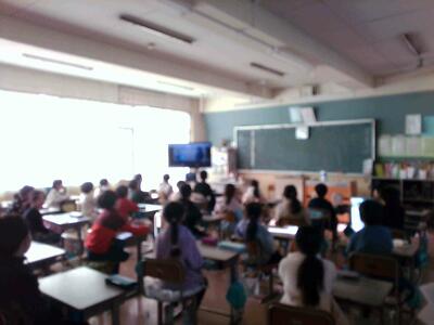 ストーリー仕立ての発表の中に、牛乳に関するクイズがあり、牛乳を飲むことの大切さについて学びました。各教室では、クイズに答えながら盛り上がっていました。