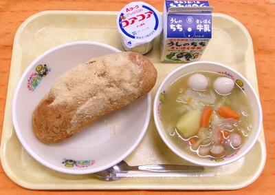 今日は子供達に人気の「きな粉揚げパン」です。コッペパンを揚げて、きな粉と砂糖をまぶしました。きな粉の香りがふわりと広がり、外はカリカリ、中はふわふわに仕上がります。子供達からは「また食べたい!」「今度はココアだして」と好評でした。